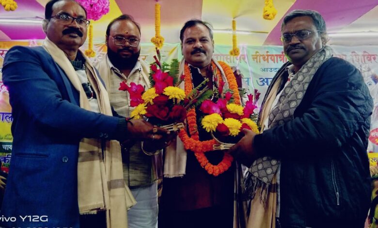 सभी सम्मानित अतिथियों को मोती का माल एवं साल पहनाकर हार्दिक स्वागत अभिनंदन किया गया शिविर कैंप के अध्यक्ष श्री शिवकुमार अग्रहरि जी द्वारा फूलबगान मोटर मार्केट ट्रेडर्स एसोसिएशन के नव निर्वाचित अध्यक्ष एवं महासचिव को फूलों का माल एवं गुलदस्ता देकर सम्मानित किया गया“`